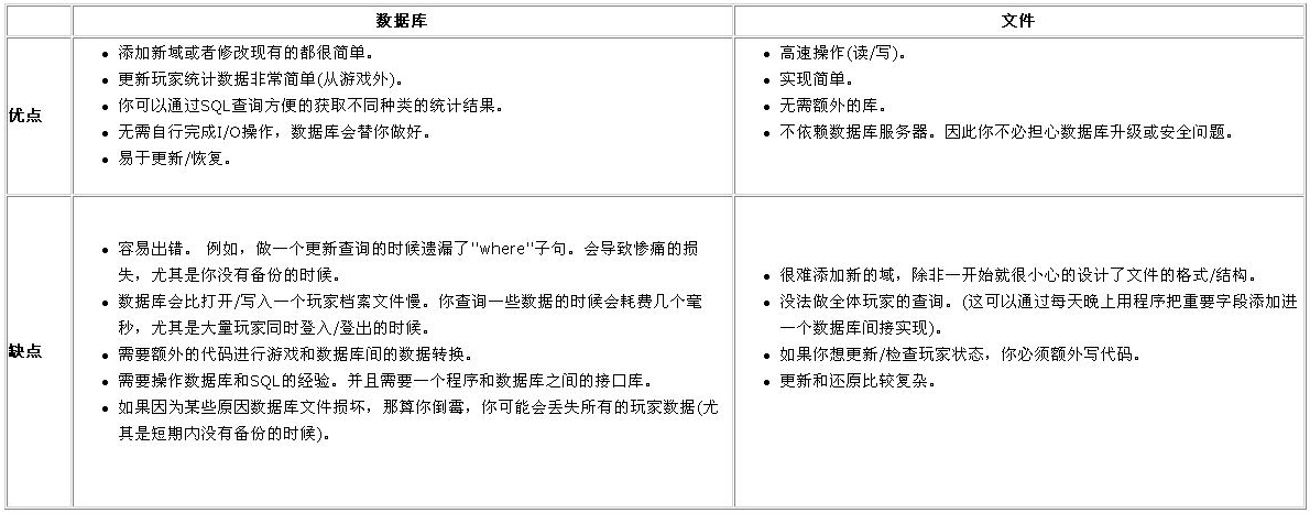 保存角色看起来简单,其实不然。例如,有两种方式保存角色:使用数据库服务或者使用文件。两者有各自的优缺点: